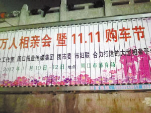 11月12日,由市委組織部、共青團(tuán)周口市委、市婦聯(lián)、周口報(bào)業(yè)傳媒集團(tuán)主辦的周口首屆大型相親會(huì)暨雙11購車節(jié)圓滿落幕?!?a href="http://m.fjxykj.com/content/2017-11/15/content_591402.htm" target="_blank" >[詳細(xì)]