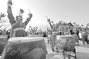 ▲2月24日,在山東煙臺(tái)毓璜頂廟會(huì)上,老年鑼鼓隊(duì)進(jìn)行威風(fēng)鑼鼓表演。當(dāng)日,在山東煙臺(tái)毓璜頂廟會(huì)上,民間藝人們帶來(lái)了大秧歌、威風(fēng)鑼鼓、舞龍舞獅等民俗表演,為市民和游客獻(xiàn)上精彩紛呈的傳統(tǒng)文化大餐。新華社發(fā)
