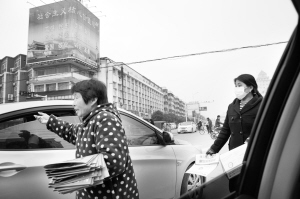 圖① 中心城區(qū)每個(gè)路口都存在不同程度的攔車散發(fā)傳單現(xiàn)象,既不文明又不安全。
