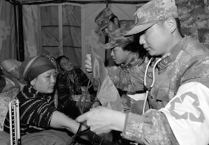 4月27日,西藏軍區(qū)日喀則軍分區(qū)部隊官兵在為尼泊爾受災(zāi)群眾義診。