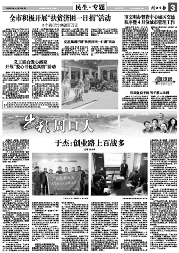 回顧自己的創(chuàng)業(yè)生涯,于杰認(rèn)為無論做人還是做事,一定要自信?!白鳛橐粋€周口人,我感到很驕傲很自豪,周口是一個人杰地靈的地方,有很深厚的文化底蘊(yùn),五千年的周口文化讓我非常自信。只要有自信、有理想、能堅持就沒有完成不了的目標(biāo),周口人到哪都不差,到哪都能成功!”于杰如是說。
