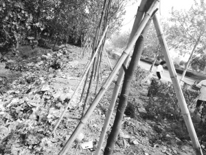 上圖   負(fù)責(zé)清掃周口大道段的環(huán)衛(wèi)工把垃圾倒在周口大道路邊的河溝中(幼兒師范學(xué)校北側(cè)100米路西),而距此不遠(yuǎn)的嵩山路口(周師北墻外)就有一個(gè)垃圾中轉(zhuǎn)站。