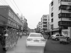 商戶(hù)在六一路上私拉亂扯的電線垂落,距離地面不足兩米,嚴(yán)重影響車(chē)輛通行。