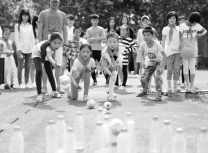 安徽亳州:留守兒童大學校園歡樂迎“六一” 5月24日,在安徽省亳州職業(yè)技術學院,幾名留守兒童在玩“保齡球”游戲。當日,安徽省亳州職業(yè)技術學院邀請譙城區(qū)牛集鎮(zhèn)安溜小學50多名留守兒童來到大學校園,開展“放飛夢想迎六一”主題活動。大學生與孩子們一起進行了各種趣味游戲,讓孩子們提前過了一個開心的“六一”兒童節(jié)。新華社發(fā)