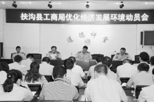 近日,扶溝縣工商局召開優(yōu)化經(jīng)濟發(fā)展環(huán)境動員會,要求全系統(tǒng)工作人員立足工商職能,多措并舉優(yōu)化經(jīng)濟發(fā)展環(huán)境,為全縣經(jīng)濟發(fā)展注入正能量。盧付昌 攝