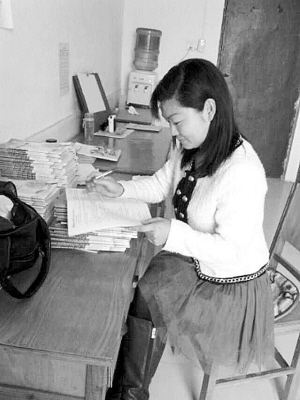 陳穎老師在批改學(xué)生作業(yè)