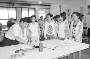 為弘揚(yáng)優(yōu)良傳統(tǒng)文化,營造熱愛書法繪畫藝術(shù)的良好氛圍,6月23日,項(xiàng)城市文聯(lián)邀請部分書畫家走進(jìn)項(xiàng)城市清華育英學(xué)校,開展了“書畫家進(jìn)課堂”活動(dòng),讓師生們充分感受到了書畫的藝術(shù)魅力,激發(fā)了大家的學(xué)習(xí)熱情。圖為書法家為該校師生示范毛筆字的寫法。
