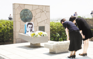 聶耳逝世80周年紀(jì)念活動(dòng)在日舉行      7月11日,在日本神奈川縣藤澤市鵠沼海岸,參加活動(dòng)的日本友好人士向聶耳紀(jì)念碑獻(xiàn)花并鞠躬。為紀(jì)念人民作曲家聶耳逝世80周年,中國(guó)駐日本大使館和東京都日中友協(xié)當(dāng)天在位于鵠沼海岸的聶耳紀(jì)念碑前舉行紀(jì)念活動(dòng)。包括日本友好人士、藤澤市政府和市民代表、在日華僑華人等150人聚集在紀(jì)念碑前,共同追思聶耳。新華社發(fā)