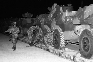 當日凌晨,“和平使命-2010”聯(lián)合軍演中方參演部隊第一梯隊安全準時抵達哈薩克斯坦境內(nèi)演習(xí)地域。新華社發(fā)