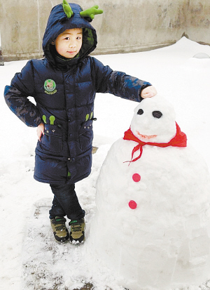 漫天的雪花,潔白的大地,這個冬天難得的景色讓小記者們激動不已,打雪仗,堆雪人……這雪天里的傳統(tǒng)娛樂項目,讓小記者和家長們感覺不到一絲寒冷,歡快的笑聲早把寒冷驅(qū)趕得無影無蹤。這不,我們的小記者和家長們一起動手堆起了雪人,胖胖的身子,大大的腦袋,長長的鼻子……雪人很快成長起來了。