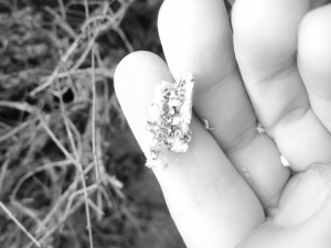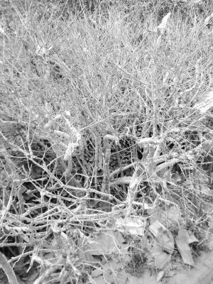 針對網(wǎng)友反映的問題,記者3月25日來到現(xiàn)場,看到很多枯死的綠化帶植物的枝條上都裹了一層厚厚的白色物體,有點像棉花(圖一)。記者用手輕輕一碰,這些白色物體就變成了粉末,里面露出像死蟲子和蟲卵一樣的東西(圖二)。